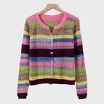 A knitted cardigan with a striped pattern inspired by retro aesthetics. The comfortable cut provides everyday ease, while its timeless character makes it ideal for stylish looks with a unique touch. A piece that blends the classic with the modern.