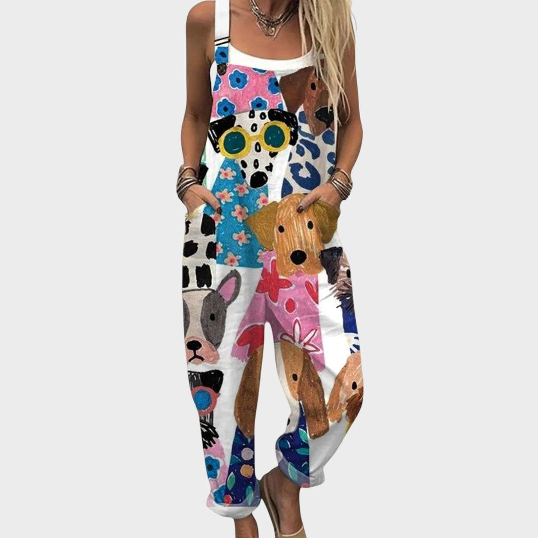 This casual jumpsuit combines comfort and unique design in a piece of clothing you'll love to wear every day. With its loose fit, practical pockets, and playful details, it's perfect for walks, outings, or relaxing moments at home.