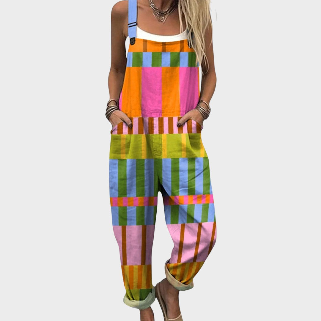 This casual jumpsuit combines comfort and unique design in a piece of clothing you'll love to wear every day. With a wide cut, practical pockets, and playful details, it's perfect for walks, outings, or relaxed moments at home.