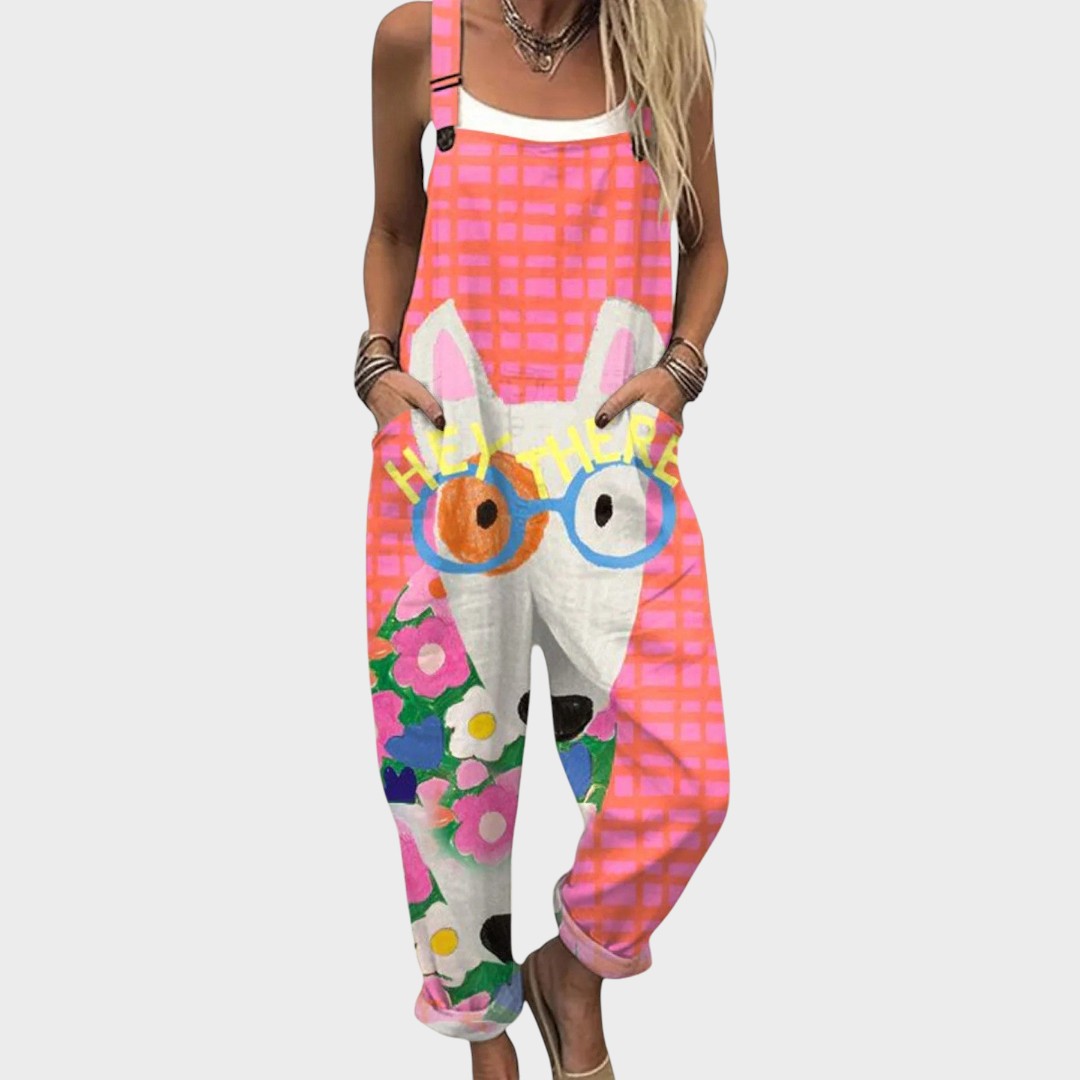 This relaxed jumpsuit combines comfort and unique design in a piece of clothing you'll love to wear every day. With its loose fit, practical pockets, and playful details, it's perfect for walks, outings, or relaxing moments at home.