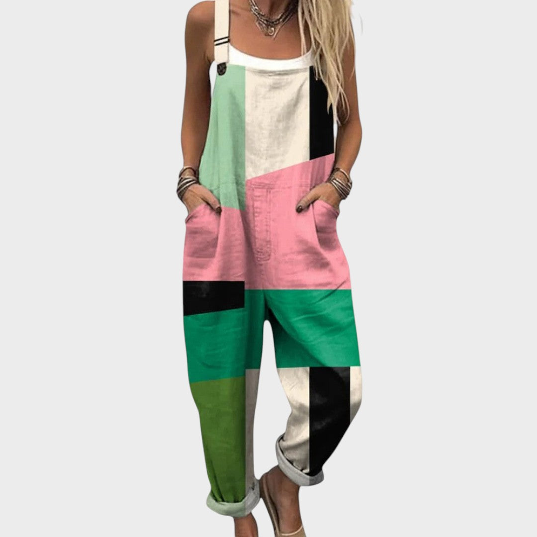 This casual jumpsuit combines comfort and unique design in a piece of clothing you'll love to wear every day. With its loose fit, practical pockets, and playful details, it's perfect for walks, outings, or relaxed moments at home.