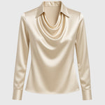This sophisticated blouse with a draped neckline and satin finish offers a luxurious appearance and flattering silhouette. It is ideal for the office and evening events, where style and class are the focus. Pair it with a skirt or elegant trousers for a carefree and stylish look.
